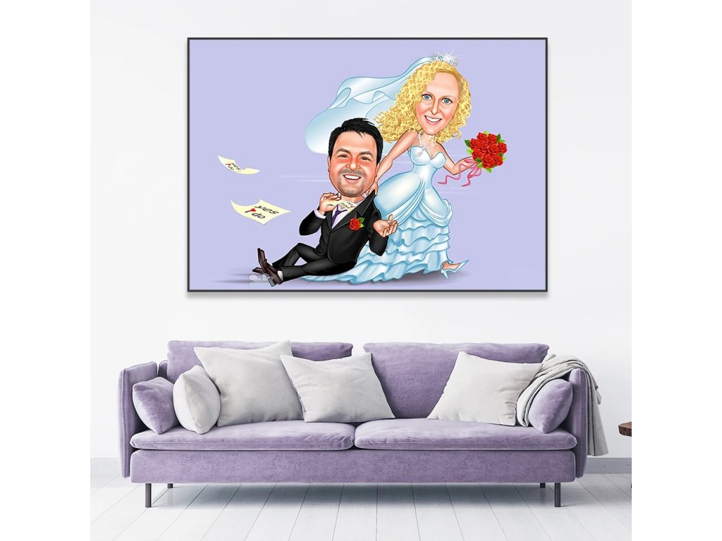 Karikatura jako dar pro novomanžele - obraz dle vlastní fotografie pro páry - SVATBA 2